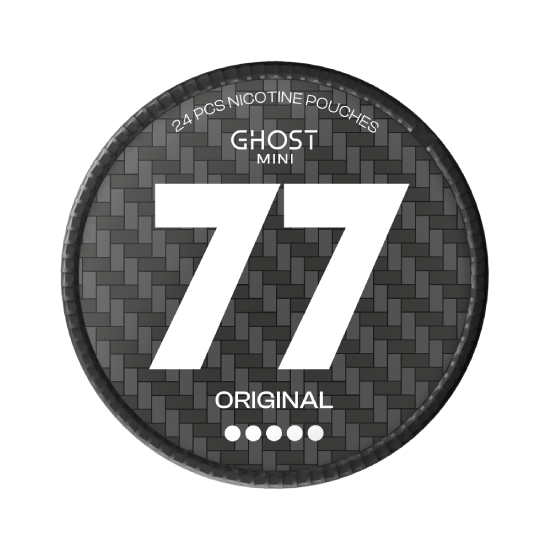 77 Ghost Original Mini nicotine pouches deliver a bold and powerful flavor with a unique blend of intense, refreshing mint and subtle sweetness. Each mini, all-white pouch contains 20 mg of nicotine, providing a strong and satisfying experience tailored for seasoned users. The discreet design ensures a comfortable fit under the lip, allowing for easy use without any risk of staining teeth. Manufactured by 77 Group, these tobacco-free pouches exemplify high-quality standards, offering both intense flavor and a clean, convenient experience.