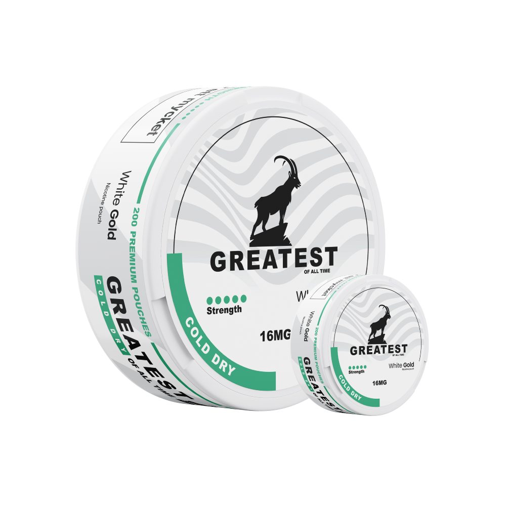 GREATEST Cold Dry 16mg Mega Can nicotine pouches offer a refreshing mint flavor combined with a nicotine strength of 16 mg per gram, equating to approximately 12 mg per pouch. Each can contains 200 slim-format pouches, designed for discreet use without staining teeth. Produced by Puff & Pouch, a Finnish manufacturer known for blending contemporary methods with traditional quality, these pouches exemplify high standards and innovative flavor combinations.