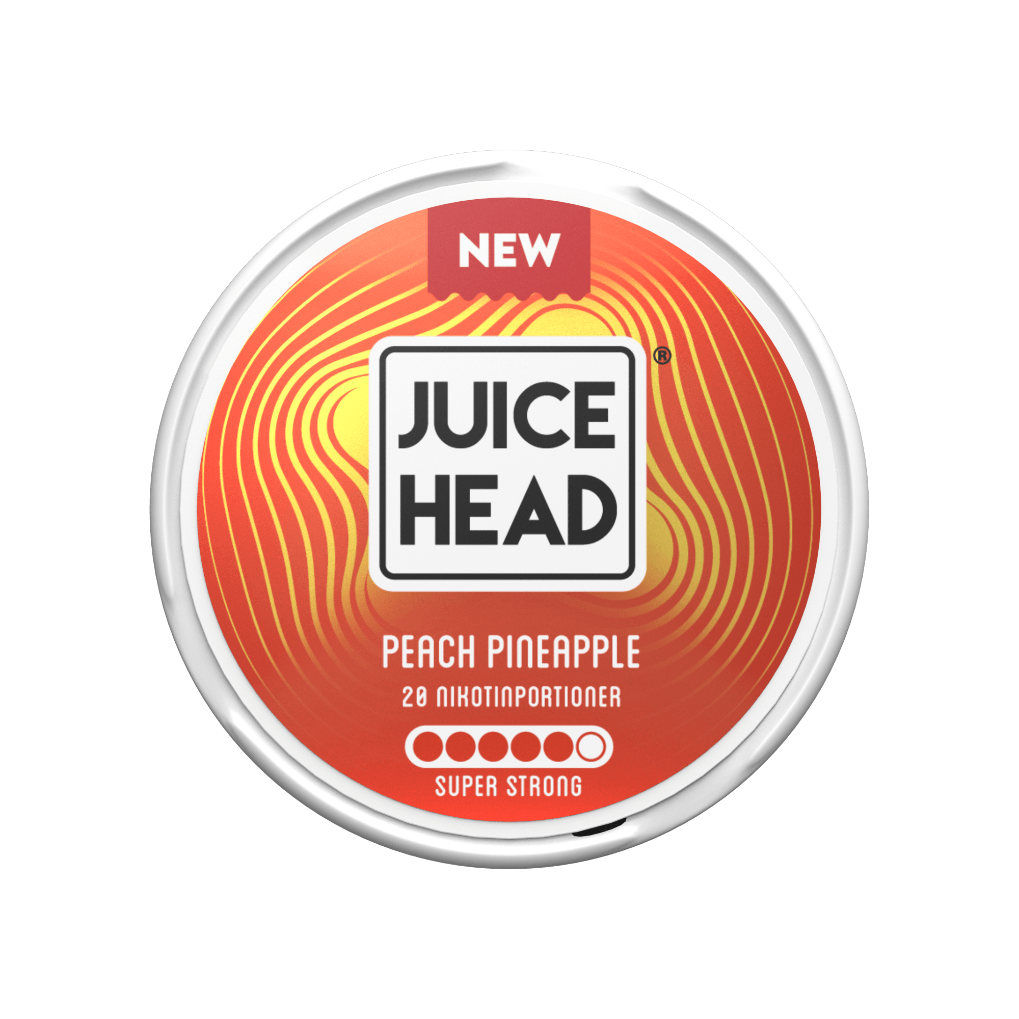 Juice Head Peach Pineapple 14mg is nicotine pouches with a peach and pineapple flavor in slim format. The flavor is introduced early and has a fruit-forward character combining peach and pineapple. The product is tobacco-free and manufactured by Streamline Group Inc under the Juice Head brand. The pouches are delivered in a slim format and consist of narrow pouches. The nicotine content is 14 mg per pouch and 20 mg nicotine per gram. The product is classified as ultra strong based on its nicotine content per pouch. Juice Head Peach Pineapple 14mg is part of the Juice Head range of tobacco-free nicotine pouches.
