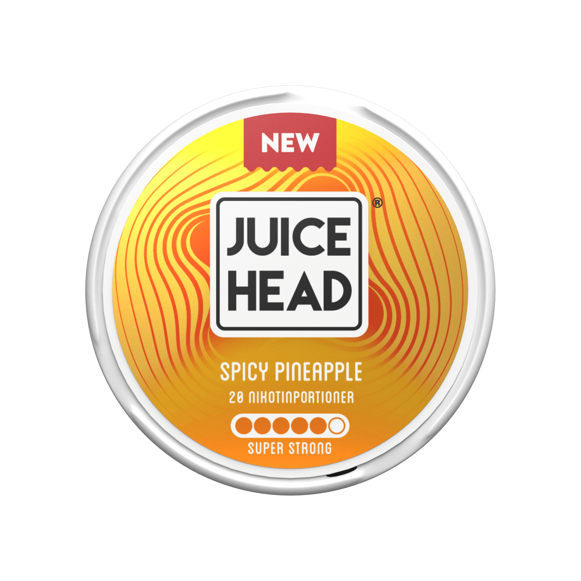 Juice Head Spicy Pineapple 14mg is nicotine pouches with a pineapple flavor in slim format. The flavor is introduced early and has a clear fruity character with a focus on pineapple. The product is tobacco-free and manufactured by Streamline Group Inc under the Juice Head brand. The pouches are delivered in a slim format and consist of narrow pouches. The nicotine content is 14 mg per pouch and 20 mg nicotine per gram. The product is classified as ultra strong based on its nicotine content per pouch. Juice Head Spicy Pineapple 14mg is part of the Juice Head range of tobacco-free nicotine pouches and contains synthetic nicotine without the use of tobacco leaf.