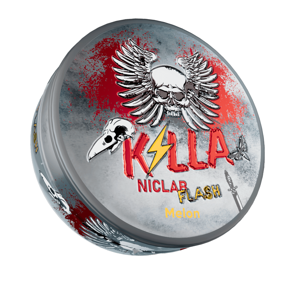 KILLA Melon is nicotine pouches with a melon flavor. The flavor is introduced early and has a clear melon character with a mild sweetness. The product is tobacco-free and manufactured by N.G.P Tobacco ApS in Denmark. The pouches are produced as white nicotine pouches. The nicotine content is specified as 5 mg nicotine per gram. The total net weight per can is 24 grams. The product is formulated using water, cellulose, acidity regulators, humectants, natural flavoring agents, nicotine, and preservatives. KILLA Melon is part of the KILLA range of tobacco-free nicotine pouches and is produced with a lower nicotine content per gram.
