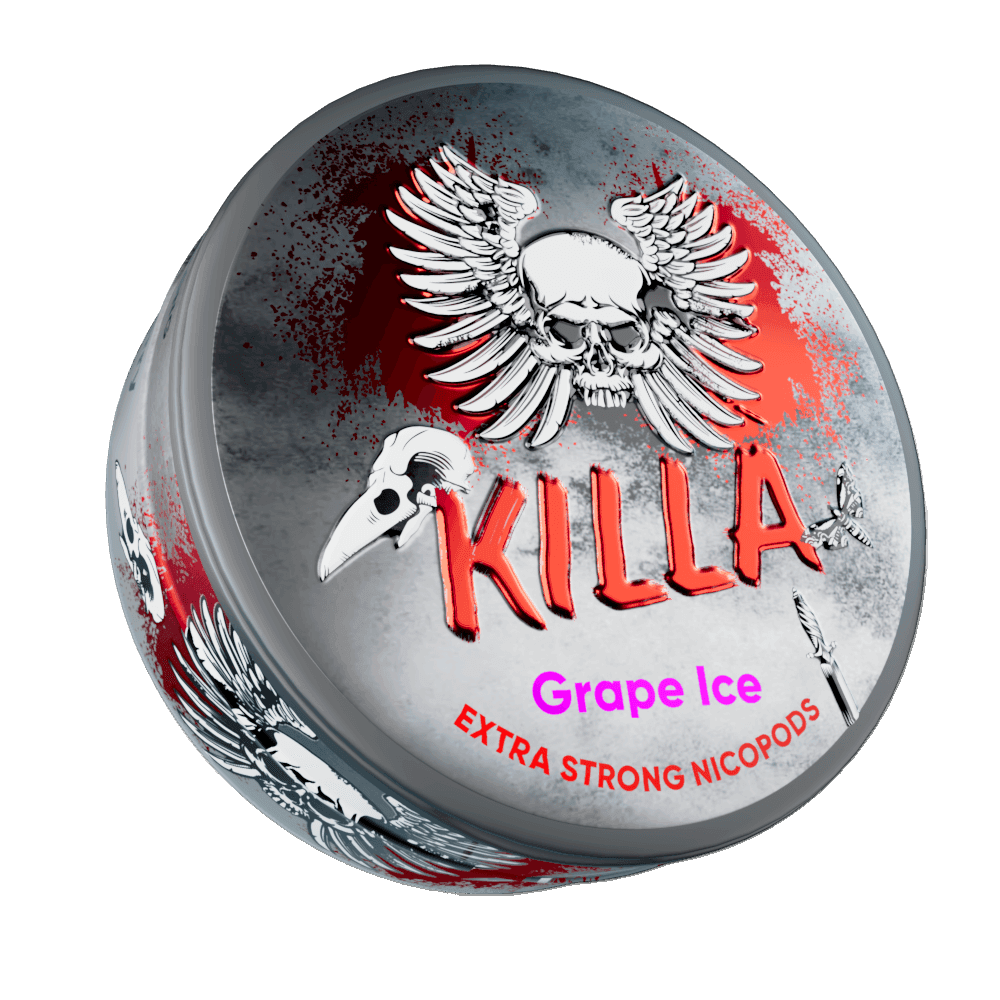 KILLA Grape Ice nicotine pouches deliver a refreshing fusion of sweet grape flavor and a cooling menthol sensation, providing a unique and invigorating experience. Designed for users seeking a robust nicotine hit, these tobacco-free pouches offer a discreet and convenient alternative to traditional nicotine products. The slim format ensures a comfortable fit under the lip, allowing for use anytime, anywhere. KILLA Grape Ice stands out for its distinctive taste and potent effect, making it a popular choice among nicotine pouch enthusiasts.
