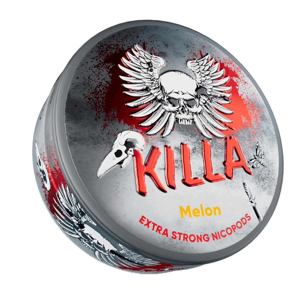KILLA Melon - Feel the icy chill under your lip with the taste of cooling melon. The can contains 20 slim pouches with a nicotine strength of 16mg/g.