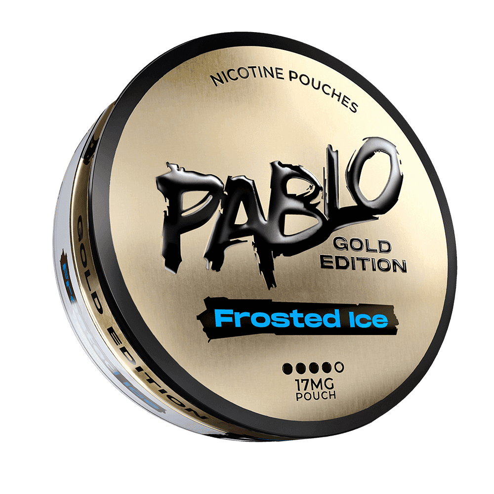 PABLO Gold Edition Frosted Ice nicotine pouches deliver a piercingly cool and ultra-refreshing mint sensation, crafted for experienced users who crave intense nicotine paired with sharp flavor. The icy blend hits fast and lingers with a chilling aftertaste, making every pouch an energizing experience. With 28 mg/g (17 mg per pouch), this strong and tobacco-free option is perfect for those seeking serious impact with clean, discreet use.