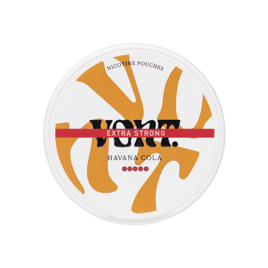 VONT Havana Cola Extra Strong nicotine pouches capture the classic cola taste with hints of caramel sweetness and a refreshing twist, now combined with maximum nicotine strength. Designed in slim format for discreet and comfortable use, each pouch delivers 24 mg of nicotine per gram, equating to about 12 mg per pouch. Perfect for experienced users who enjoy bold flavor alongside high intensity, Havana Cola Extra Strong provides a unique taste experience without staining teeth. Produced by VONT AB in Sweden, the brand is recognized for its innovative flavors, modern style, and consistent quality.